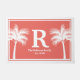 Die helle, summery und nette Fußmatte, die Silhouetten einer WeißPalme kennzeichnet, entwerfen zusammen mit dem Ihrem Familiennamen, Monogramm und hergestellten Datum im Weiß.