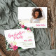 Moderne feminine Abschluss Foto Ankündigung und Party Einladung Design mit einem kühnen tropischen Blumenrahmen und stilvollen Kalligraphie Drehbuch Schriftart. Personalisieren Sie das Design mit Ihrem Foto, Namen und Party Details. Verwenden Sie die Entwurfswerkzeuge, um mehr Fotos hinzuzufügen und alle Textfarben und Schriftart anzupassen, um ein einzigartiges Design zu erstellen.