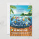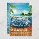 Diese tropischen Abschluss-Pool-Party Einladungen werden das Party im Sommer sicher zum Laufen bringen! Vorlagen, einschließlich einer Fotovorlage auf der Rückseite. Tropische Palmen und eine Strandinsel oben, realistische Poolspritzen und Lautsprecher, Beachbälle, gelbe Enten mit ausgezeichneter Typografie.