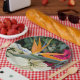 Tropischer Bird der Paradise Pflanze und Poinsetti Pappteller
