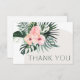 Moderne und elegante Tropenkarte mit einem rosa und grünen Blumenstrauß auf einem hellen, steinfarbenen Bogen.