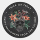 Tropischer Blütenschädel-Halloween-Trick oder -Tre Runder Aufkleber