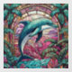 Tropisches Delphinfenster mit rosa Glasmalerei