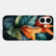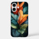 Frische, stilisierte Orange- und Gelbblüten mit tiefgrünen Akzenten auf dunklem Hintergrund rufen ein tropisches Paradies hervor, das durch Sonnenuntergangsfarben entfacht wird.