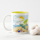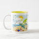 Seebad mit Yacht und Möwen, tropischer Strand mit bunten Sonnenschirmen, Beach Ball und mehr. Ich liebe Ferien Tasse, fügen Sie einfach den Namen oder anderen Text Ihrer Wahl.