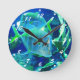 Tropischer Fisch in Blau Runde Wanduhr