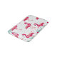 Tropischer Flamingo und Blätter, Sommermuster. Badematte