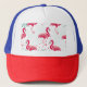 Tropischer Flamingo und Blätter, Sommermuster. Truckerkappe