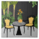 Ich schuf dieses digitale zeichn, inspiriert von einem kleinen städtischen Café, umgeben von tropischen, üppigen Garten Hof, mit Monstera-Blätter, Palmen und Vogel von Paradies Blume Tischunterlage.