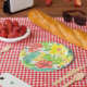 Tropischer Garten, Hibiskus-Plumeria und Blätter a Pappteller