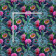 Wasserfarbene exotische tropische Sukkulente, Kakteen und Bananen Blätter Blume Garten auf einem dunkelblauen Hintergrund. Beachte! Sie können die Kachelgrößen ändern, um die Größe des zeichnend anzupassen, indem Sie auf "Anpassen!" klicken.