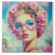 Eine faszinierende Retro-Glamour-Digitale Illustration einer stilvollen Frau, die eine übergroße rosa Sonnenbrille und eine lebendige Blumenkrone trägt. Umgeben von tropischem Himmel, Palmen und Segelbooten strahlt dieses verträumte Kunstwerk Vintage Strandeleganz und hohen Modecharme aus. Perfekt für Redbubble-Produkte wie Plakate, Telefongehäuse, Kleidung und Aufkleber, es bringt kühne Farben, Schönheit und Sommervibes in jede Sammlung.