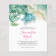 Sie planen eine preisgünstige tropische Geburtstagsparty? Diese charmante Einladung enthält das Set Ihrer Tochter in einer modernen handgeschriebenen Schrift. Eine Grenze meiner Aquarell, Schweizer Käsespezialitäten, Blätter in Blues-, Grüntöne- und Türkistönen schmücken diese charmante Einladung. Eine einzigartige aber charmante Wahl für die Party des Luau-Swimmingpools und den tropischen...sogar süße 16. Weitere aloha-Designs von Victoria Grigaliunas können Sie unter www.zazzle.com/dotellabelle einkaufen.