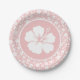Chic tropischer weißer Hibiskus auf einem Baby-Rosa Hintergrund Papier Teller in 2 Größen. Ändern Sie die Hintergrundfarbe in eine beliebige Farbe, wenn wir nicht die gewollt Farbe haben. PASSENDE Servietten, Einladungen und mehr in unserem Geschäft.