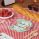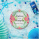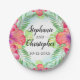 Maßgeschneiderte Hochzeitsdessert-Teller mit einem tropischen Strand Ozeanvibe. Schöne tropische Hibiskus-Blume mit rosa Blumen, grünen Blätter und türkisblauen Aquarellakzenten und goldenen Rahmen Details. Feiern Sie ein Strandthema mit hellen und sanften tropischen Ozeanfarben, perfekt für eine Hochzeit in Urlaubsort, eine Inselrundfahrt oder einen hawaiianischen Ausflug.