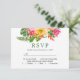 Tropischer Hibiskus Blumenpalmen Hochzeit RSVP-Karte. Schönes elegantes tropisches Hochzeitsdesign RSVP mit botanischen Aquarell-Blume . Dieses maßgeschneiderte, moderne Design kann leicht mit Ihren eigenen Details personalisiert werden.