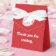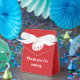 Geben Sie Ihren Gästen, Jungfernhäusern, Trauzeugen oder jedem anderen eine besondere Leckerei mit diesen individuell gestaltbaren Gefälligkeitsboxen mit Kirschrot-Hintergrund mit einer Blume aus weißem Hibiskus und tropischen Blättern auf der Vorderseite, auf der Rückseite und der Klappe der Box. Jede dieser Seiten enthält auch einige Beispieltexte, die Sie für Ihre eigene Hochzeit oder Veranstaltung mit tropischen Themen anpassen können. Verpassen Sie nicht, die anderen Produkte des Tropical Hibiskus in Cherry Set auszuprobieren, um einen wirklich koordinierten Look für Ihre Veranstaltung zu schaffen.