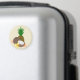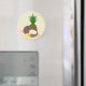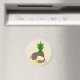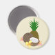 Ein Magnet mit einer tropischen thematischen Abbildung einer Ananas hinter einer Kokosnuss und eineinhalb umgeben von drei Hibiskus-Blume.