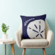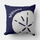 Dieses moderne Kissen an der Küste ist mit einem weißen Sand-Dollar-Tropen auf einem marineblauen Hintergrund mit eigenem Namen ausgestattet und eignet sich hervorragend für das Strandhaus, die Hütte am Strand, für die Wohngestaltung zum Thema Wassersport, Küste oder Strand oder wenn Sie am Meer wohnen. Foto der Koralle und Design © von TK Goforth, alle Rechte vorbehalten.