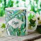Diese personalisierte Tasse mit goldenem Glitzer aus tropischen Blättern erinnert sie daran, sich an einem Strand von Hawaii oder in den Tropen zu befinden, und ist das perfekte Geschenk für ein Brautparty. Ihr Name sitzt in einem goldfarbenen, gerippten Diamanten auf dem hawaiianischen Monstera-Blatt-Design. Jedes Mädchen, das tropische Blätter und tropische Strände Lieben, wird begeistert sein, diese Tasse zu erhalten! Foto des Monstera Blatt und Design © von T.K. Goforth und unterzeichnet von dem Künstler alle Rechte vorbehalten.