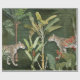 Große Größe und schweres Gewicht für Entcouvern auf Möbeln, nach den Türen auf Schränken oder zu schaffen Wandkunst mit. Im Vintagen Safari-Stil befinden sich Leoparden, die durch den tropischen Urwalddschungel mit roten Blume, Palmen und Bananenbäumen, Grünpflanzen und Blattdesign mit Drehbüchern, handgeschriebenen Briefen und Siegeln ephemera schlüpfen, die vom international anerkannten Künstler und Designer, Audrey Jeanne Roberts, gestaltet wurden.
