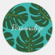 Tropical Monstera Deliciosa Palmenblatt Blumenblätter für Aufkleber und Umschlag Aufkleber / Dichtungen. Quadratische oder runde Aufkleber mit trendigen exotischen Regenwald-Blätter. Elegante Schrift-Typografie-Vorlage für Namen, Monogramm oder lustige Zitate. Niedliche Hochzeit, Hochzeit, Ruhestand oder Dschungelgeburtstagsfeiern. Hübsch türkisfarbene oder benutzerdefinierte Hintergrundfarbe mit personalisiertem Text. Niedliches DIY Accessoire für trendige Strand-Hochzeit in Urlaubsort, Jubiläum, Verlobung GRILLEN etc. Von der Natur inspirierte Kunst. Ändern Sie die Menge, um den billigen Bulk-Preis zu erhalten.