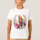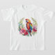 Ein Scarlet-Ara-Papagei mit einem tropischen Kranz von Pflanze und Blume um ihn herum.