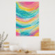 Dieses lebendige abstrakte Design zeichnet das Wesen eines sonnenverwöhnten tropischen Paradieses aus. Wellen von Türkis, Rosa, Gelb und Grün bilden eine dynamische, mehrschichtige Zusammensetzung, die an bunte Gezeitenpools und schimmernde Meeresflächen erinnert. Spielerische Punktmuster, Zickzacken und Bio Formen tanzen über die Oberfläche, was die unterschiedlichen Texturen und Lebensformen in den Korallenriffen hervorruft. Die warme, energische Farbpalette erinnert an faule Sommertage, exotische Ferien und die faszinierende Schönheit der farbenfrohen Ökosysteme der Natur.