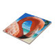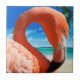 Tropische Flamingo-Keramik Fliesen mit einem schönen rosa Flamingo-Portrait, das einen tropischen Strand im Hintergrund hat. Nutzen Sie dies als Trivet, gut dekoriert oder als Fliesenmuster für ein dekoratives Zuhause-Projekt mit einem Strandthema.