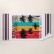 Dieses freundliche, dynamische Design besticht durch seine zentrale Lage und die Nähe zu den wichtigsten Sehenswürdigkeiten der Stadt. Fierige Rot- und Orangetöne treffen auf coole aquamarine und beige Streifen, die die Bühne für eine Surfer-Silhouette bilden, die in Richtung der Wellen spaziert. Hochwertige Palmen umrahmen die Szene, während die spielerische Typografie die sorglose Essenz des SOMMERS und TROPISCHEN SONNENS unterstreicht. Dieses dynamische Aussehen ist perfekt für alle, die für warme Abend, Meeresbrisen und den unendlichen Ruf des Surfens leben.