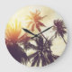 Tropischer Sonnenuntergang: Palme Silhouette Vinta Große Wanduhr
