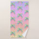 Dieses Badetuch wird nach Ihrem Tag am Meer oder Pool so einladend sein. Tropische Farben eines Insel-Sonnenuntergangs sind ein Sommer-Klassiker. Fügen Sie einen farbenfrohen Palmenbaum hinzu und es wird zum schönsten Strand-Badezimmer-Accessoire. Mehrfarbige, weiche Wasserfarben-Pastellfarben.