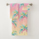 Dieses Badehandtuch-Set im Inselstil wird nach Ihrem Tag am Meer oder Pool sehr einladend sein. Tropische Farbtöne eines Insel-Sonnenuntergangs sind ein Sommer-Klassiker. Fügen Sie eine farbenfrohe Palme hinzu und es wird zum schönsten Strand-Accessoire fürs Badezimmer. Multicolor-soft-Wasserfarbe-Pastell.