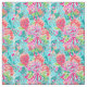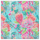 Ein nahtloses, präpariertes Muster mit rosa, orangefarbenen, korallenfarbenen und roten Blume auf einem minziös grünen Hintergrund mit rundem Farbspritzen und weißen Punkten. Das Design ist handbemalt und verbindet lebendige Blumenelemente mit strahlender Pracht, um einen lebendigen und stilvollen Effekt zu erzielen.
