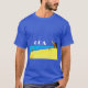 Dieser lebhafte, farbenfrohe T - Shirt ist für ihn oder sie und zeichnet sich durch einen Ausdruck von Benaulim Beach in Goa, Indien aus, mit dem Wort GOA in blauer Schrift auf der Vorderseite. Das Bild ist stilisiert und zeigt den riesigen Strand in hellen Gelben an einem türkisblauen Meer und Himmel. Das Zeug eines mit Perlen aufgehängten lokalen Bootes ist auf der rechten Seite, und man kann Kühe und Radfahrer am Strand sehen. Es ist perfekt für den Strand.