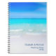 Ein kundenspezifisches Notizbuch für (Bestimmungsort) wedding Pläne oder ein personalisiert mit was Text-Anzügen Ihr Bedarf. Entworfen mit einem sandigen tropischen Strand. Ein herrliches Türkismeer im Abstand und im Kristall - klares Wasser, das einen sandigen Strand streichelt. Ein heller blauer Himmel im Hintergrund.