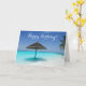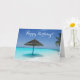 Eine Glückwunschkarte zum Geburtstag, vollständig anpassbar. Entworfen mit einem Foto eines landschaftlichen tropischen Strandes auf den Malediven. Ein weißer Sandstrand und kristallklares Wasser mit einem abgeschiedenen Strohschirm. Idyllisch und ruhig.