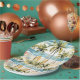 Entspannen Sie in einem Party mit Strandthemen und genießen Sie die Teller mit Surfbrettern. Ideal für Snacks und Desserts mit einer Touch Sommerspass.