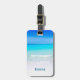 Personalisierter Gepäckanhänger mit einem tropischen Sandstrand. Ein wunderschönes türkisfarbenes Meer in der Ferne und kristallklares Wasser, das einen Sandstrand umgibt. Ein hellblauer Himmel im Hintergrund.