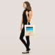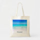 Eine personalisierte Tasche mit einem tropischen Sandstrand. Ein wunderschönes türkisfarbenes Meer in der Ferne und kristallklares Wasser, das einen Sandstrand umgibt. Ein hellblauer Himmel im Hintergrund.