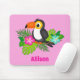 Dieses tropische Mousepad zeigt einen hübsch rosa Hintergrund mit einem hübschen Toucan-Vogel in der Mitte. Dahinter steht dein Name in einem hübschen rosa Schriftart. Bestelle noch heute! Kontakt: https://www.etsy.com/shop/JoKavanaghDesigns