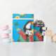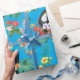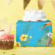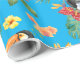 Tropisches Muster mit Tukanen, Hibiskus, Helikonie und Anthurium in hellblau.