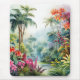 Eine Aquarell-Landschaft eines tropischen Waldes mit farbenfrohen Blumen