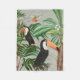 Ein wunderschönes tropisches Walddesign in Aquarelltönen mit wilden Vögeln. Dieses tropische Walddesign ist ideal für alle, die tropische Landschaften, tropische Toucans und farbenfrohe Vögel, grüne Pflanze, Palmen und tropische Blattbilder Lieben. Perfektes Zuhause-Dekor oder Geschenk.