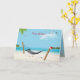 Tropischer Strand mit Hängematte und Weihnachtsmütze im Sand für frohe Weihnachten.