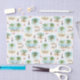 Dieses festliche, tropische Weihnachtspapier zeigt ein Muster von Urlaubsszenen mit Palmen, die mit bunten Strandlampen und Strandstühlen mit Blick auf das Wasser verziert sind, mit rosa Flamingos in Weihnachtsmannmützen verziert sind, und Möwen, die auf dekorierten Kissen stehen.