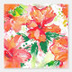 "Tropical Whimsy" ist ein nahtloses Muster in Aquarellfarben mit lebhaften orangefarbenen Hibiskus-Blume mit dunkelgrünen Blätter auf weißem Hintergrund. Das Design wird durch Pinselstriche in Rosa und Hellgrün hervorgehoben, wodurch eine skurrile und künstlerische Touch entsteht. Die Elemente sind fließend angeordnet, wodurch ein harmonisches und kontinuierliches Muster entsteht, das sich ideal für verschiedene Anwendungen wie Textilien, Wallpaper und digitale Designs eignet.