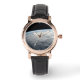 Uhr, Klassische Damenuhr mit schwarzen Lederarmband