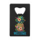 Mit diesem fetten Flaschenöffner aus der Welcome Pineaple Collection können Sie Ihrem Barware ein Paradies geben. Mit einem illustrierten Ananas mit blühenden Hibisken und einem türkisfarbenen "WICOME" auf einem schwarzen Hintergrund ist es perfekt für Party, Strandbäder oder Ferienvermietungen. Dieses tropische Design Set ein warmes, festliches Ambiente und macht den stilvollen, funktionalen Sake-Gästen die Liebe, lange nach dem Feierabend.