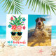 Die Weihnachtskarte zum Thema Tropical bietet eine niedliche, fröhliche Ananas mit bunten Saitenlichtern, Ziergegenständen und Sonnenbrillen und einen hawaiianischen "Mele Kalikimaka"-Gruß. Personalisieren Sie den Namen und Gruß am unteren Ende zusammen mit einem beliebten Foto (Menschen oder Haustiere!). Original-Kunstwerk KL Stock.